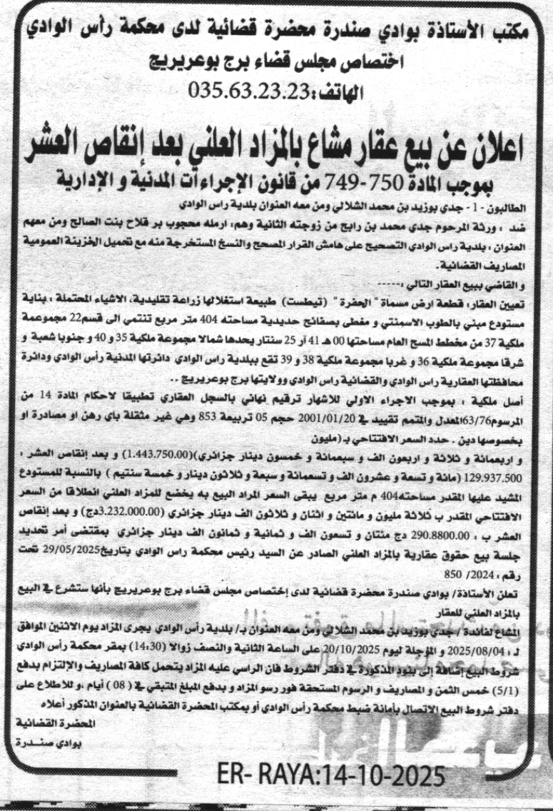 Il sera procédé à la vente au plus offrant et dernier enchérisseur le : 21/10/2025';