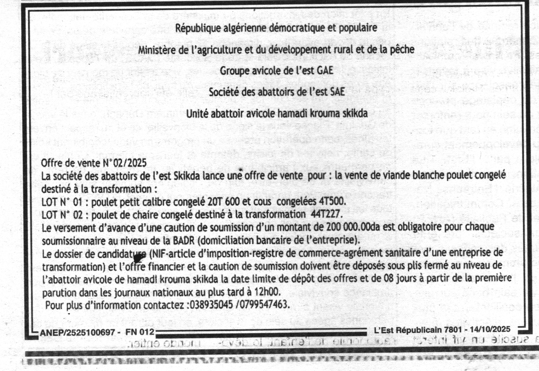| (*) LA DATE EST DONNÉE À TITRE INDICATIF, VEUILLEZ LA VÉRIFIER LORS DU RETRAIT DU CAHIER DES CHARGES OU AUPRÈS DE L\'ÉMETTEUR | |