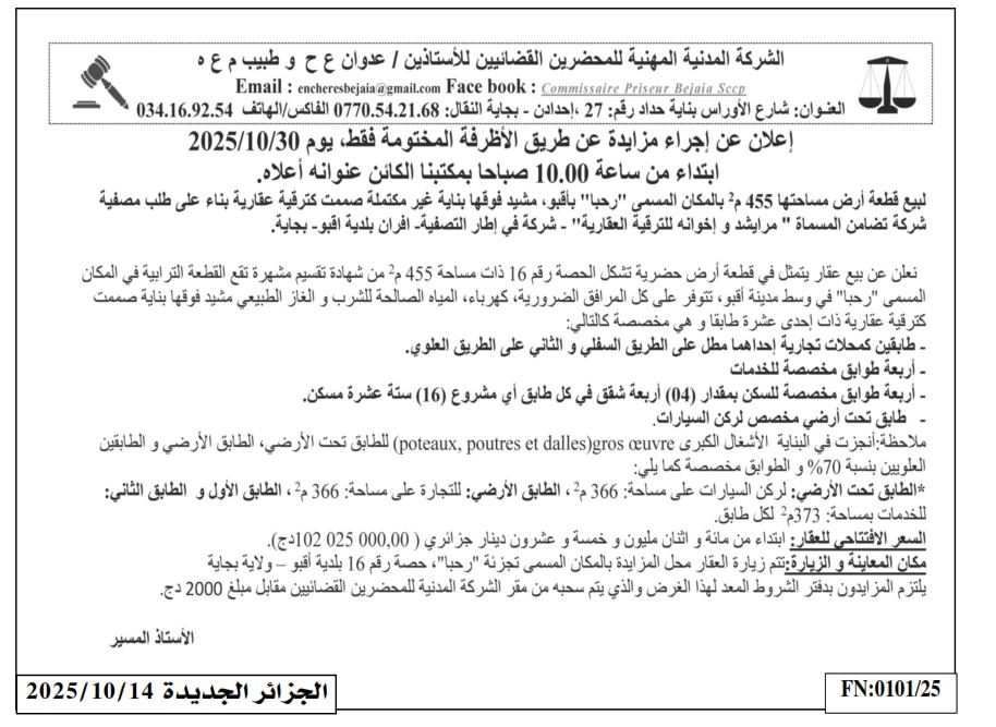 Il sera procédé à la vente au plus offrant et dernier enchérisseur le :