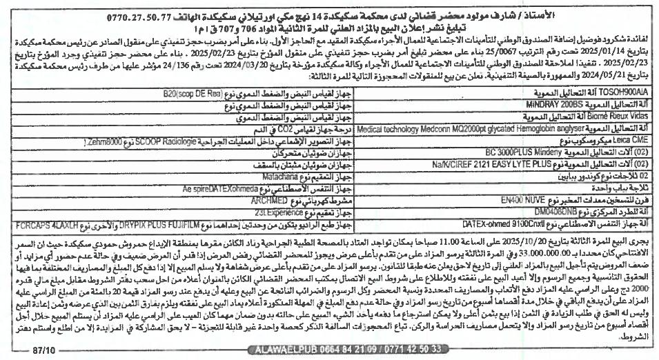 Il sera procédé à la vente au plus offrant et dernier enchérisseur le :