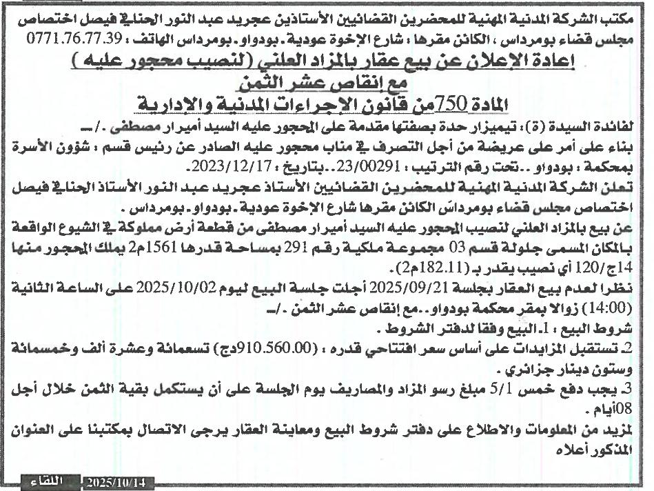 Il sera procédé à la vente au plus offrant et dernier enchérisseur le :