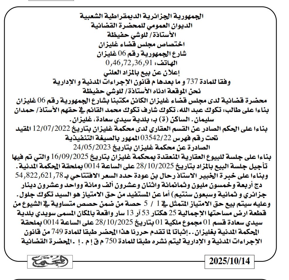 Il sera procédé à la vente au plus offrant et dernier enchérisseur le :