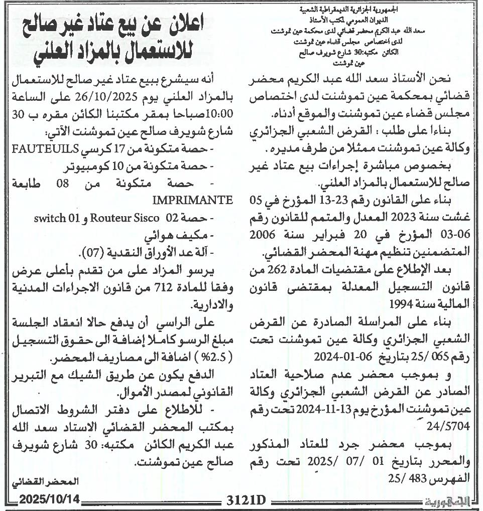 Il sera procédé à la vente au plus offrant et dernier enchérisseur le :