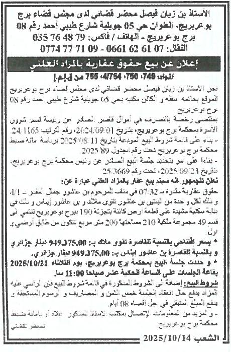 Il sera procédé à la vente au plus offrant et dernier enchérisseur le :