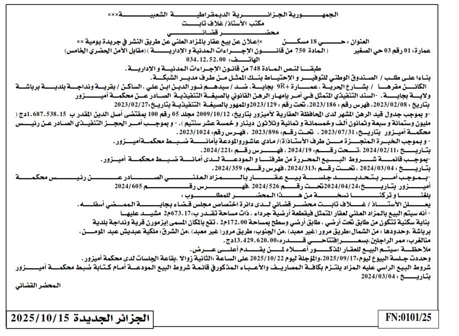 | Paru dans le journal : الجزائر الجديدة | |