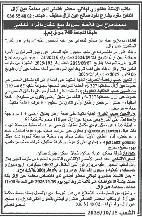 Il sera procédé à la vente au plus offrant et dernier enchérisseur le :