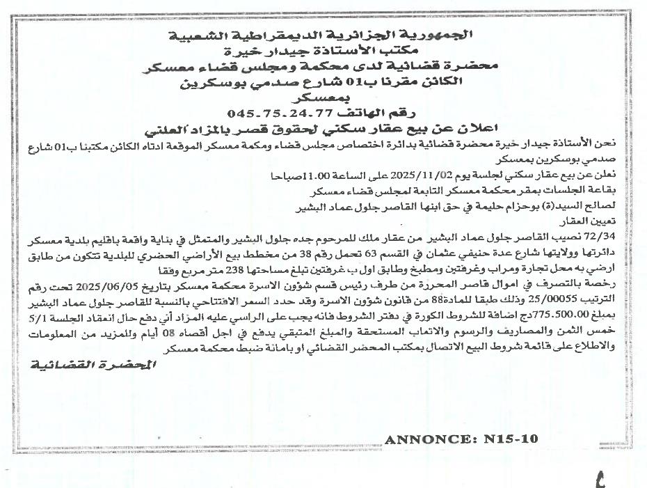 | Objet: Vente d'un immobilier | |