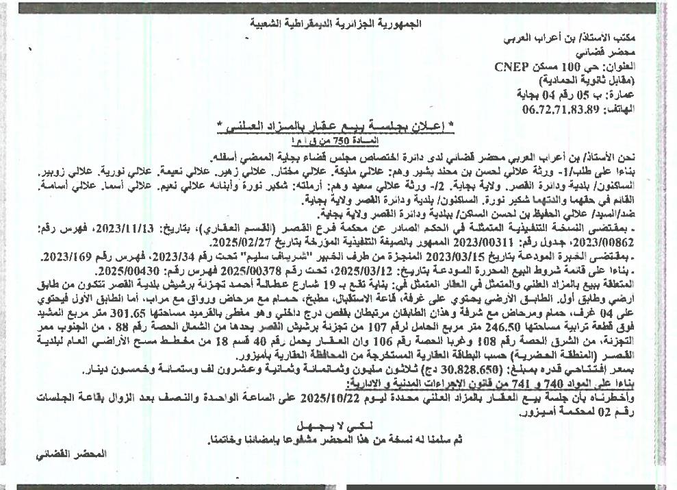 Il sera procédé à la vente au plus offrant et dernier enchérisseur le :