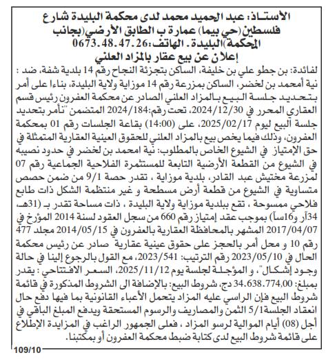 Il sera procédé à la vente au plus offrant et dernier enchérisseur le : 22/10/2025';