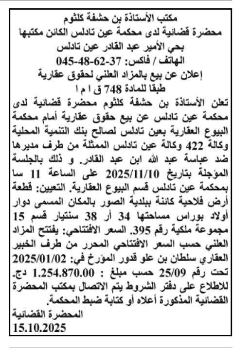 Il sera procédé à la vente au plus offrant et dernier enchérisseur le :
