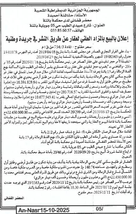 | Paru dans le journal : النصر | |