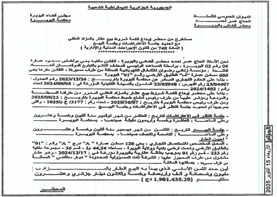 | Paru dans le journal : الجزائر | |