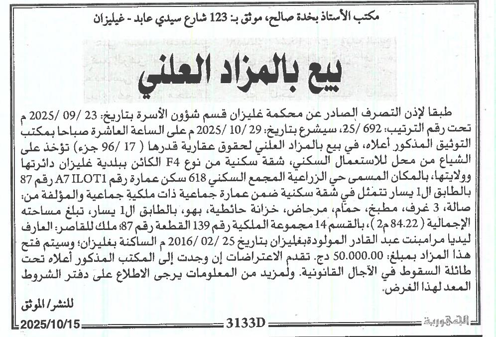 Il sera procédé à la vente au plus offrant et dernier enchérisseur le :