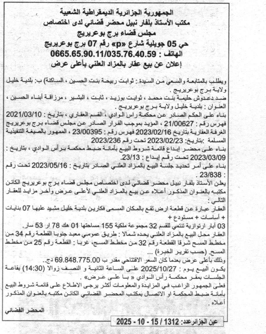 | Paru dans le journal : عين الجزائر | |