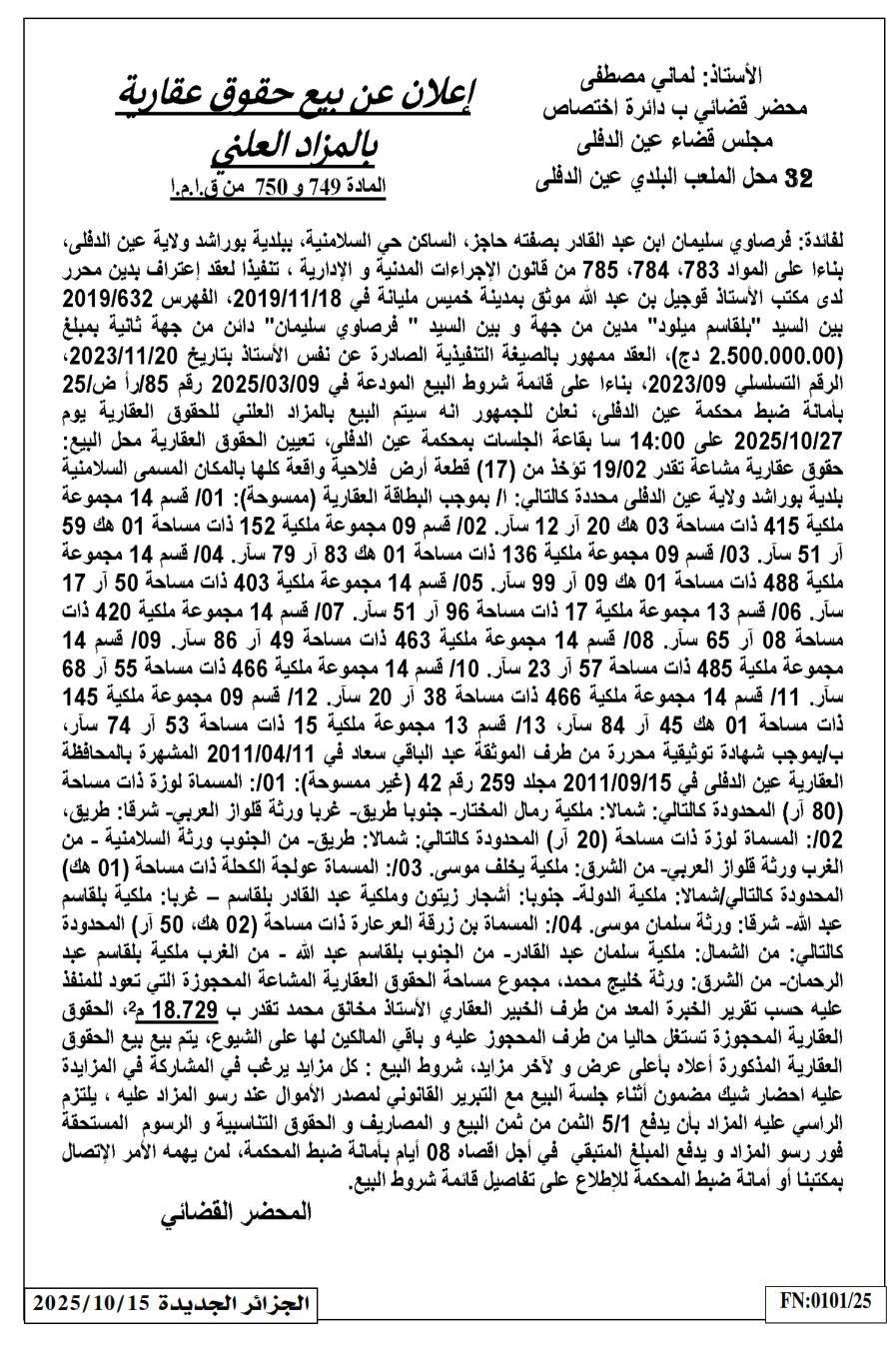 Il sera procédé à la vente au plus offrant et dernier enchérisseur le :