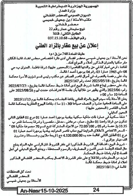 Il sera procédé à la vente au plus offrant et dernier enchérisseur le :