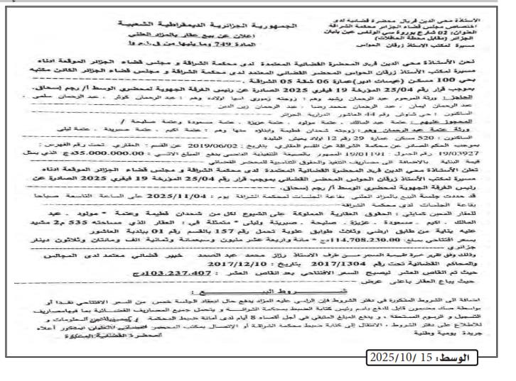 Il sera procédé à la vente au plus offrant et dernier enchérisseur le :
