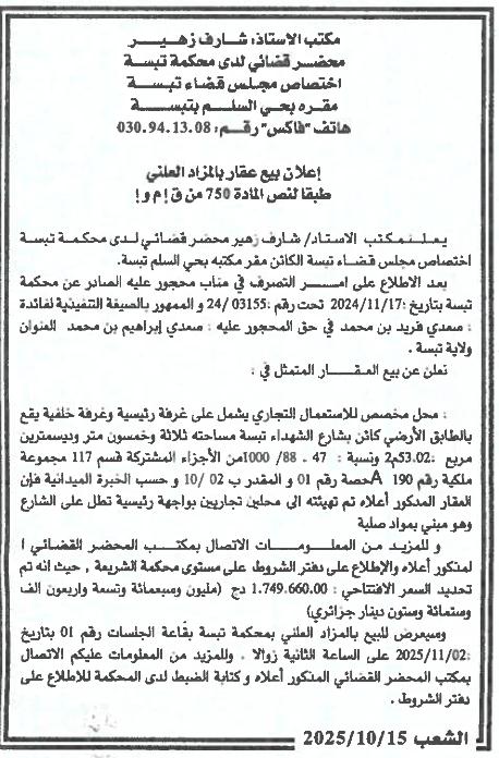 Il sera procédé à la vente au plus offrant et dernier enchérisseur le :
