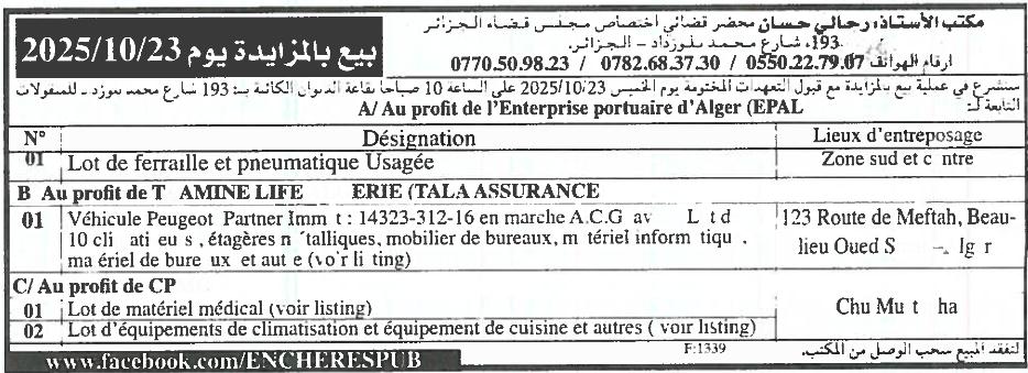 Il sera procédé à la vente au plus offrant et dernier enchérisseur le :