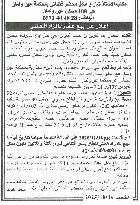 Il sera procédé à la vente au plus offrant et dernier enchérisseur le :
