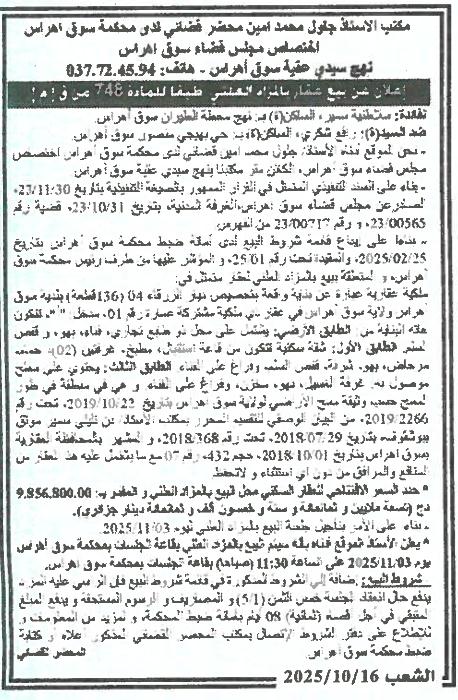 Il sera procédé à la vente au plus offrant et dernier enchérisseur le :