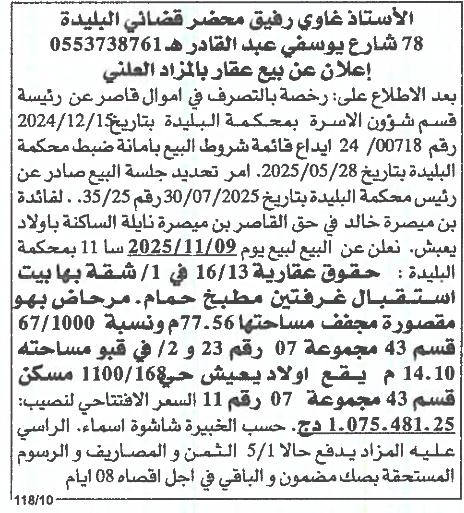 Il sera procédé à la vente au plus offrant et dernier enchérisseur le :