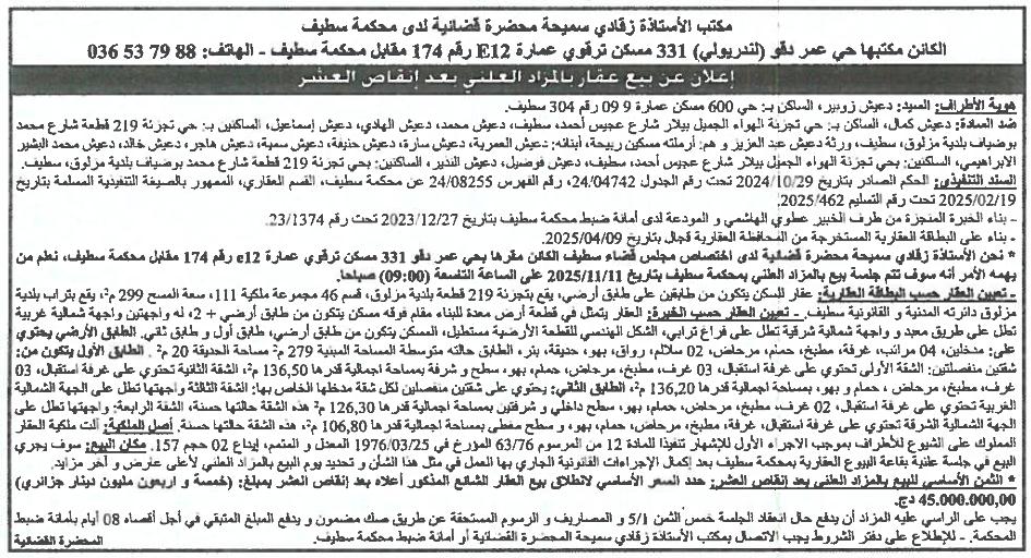 Il sera procédé à la vente au plus offrant et dernier enchérisseur le :