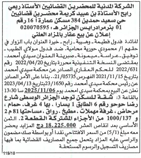 Il sera procédé à la vente au plus offrant et dernier enchérisseur le :