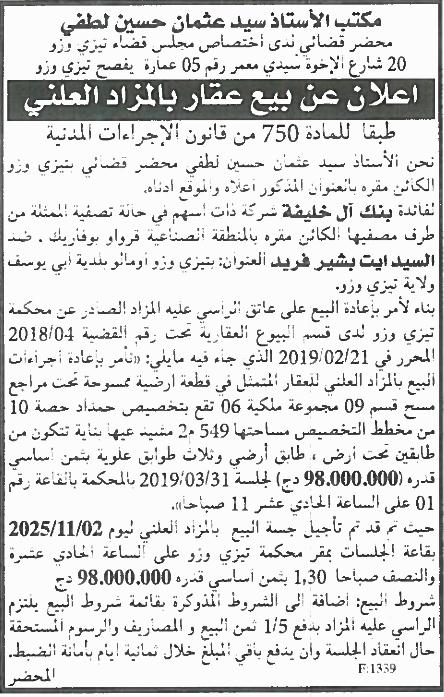 Il sera procédé à la vente au plus offrant et dernier enchérisseur le :