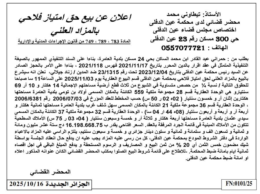 Il sera procédé à la vente au plus offrant et dernier enchérisseur le :