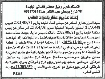 Il sera procédé à la vente au plus offrant et dernier enchérisseur le : 23/10/2025';