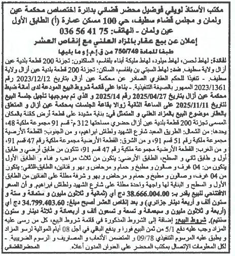 Il sera procédé à la vente au plus offrant et dernier enchérisseur le :