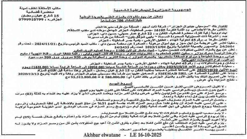 Il sera procédé à la vente au plus offrant et dernier enchérisseur le :