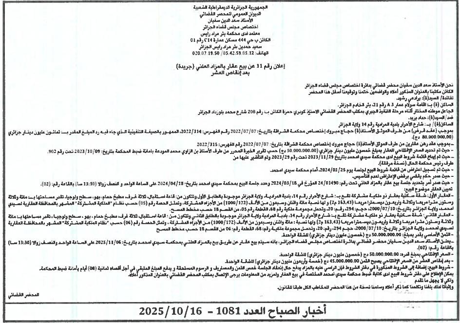Il sera procédé à la vente au plus offrant et dernier enchérisseur le :