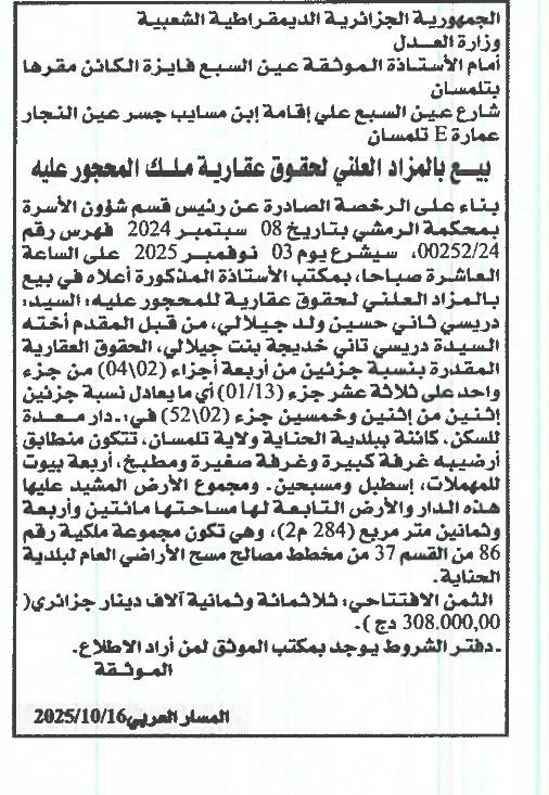 Il sera procédé à la vente au plus offrant et dernier enchérisseur le :