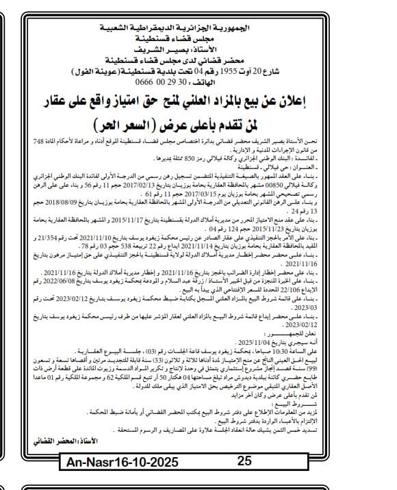 | Paru dans le journal : النصر | |