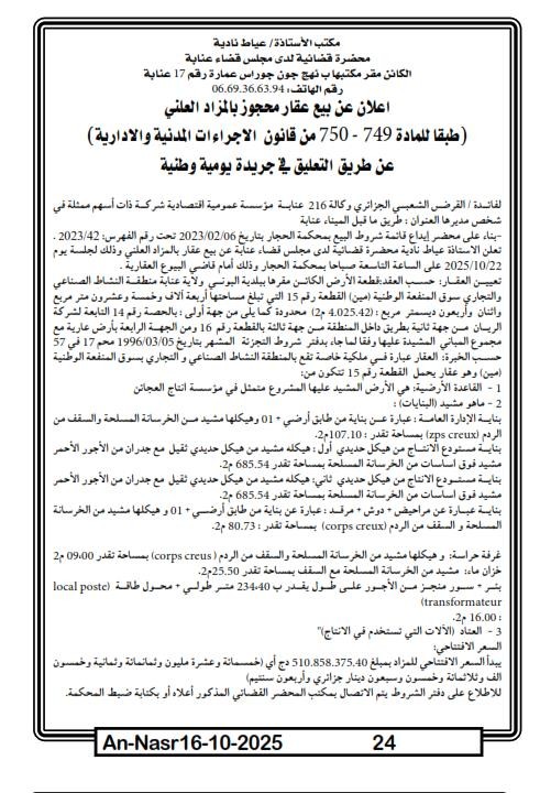 Il sera procédé à la vente au plus offrant et dernier enchérisseur le :