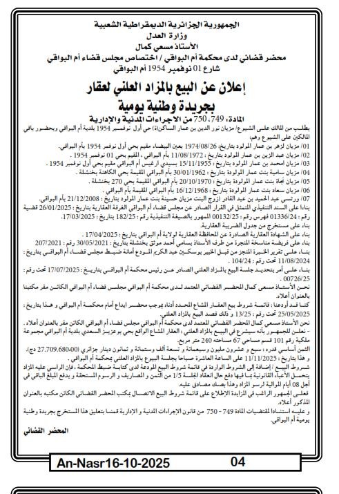 | Paru dans le journal : النصر | |