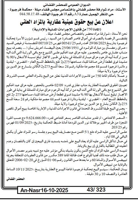 Il sera procédé à la vente au plus offrant et dernier enchérisseur le :