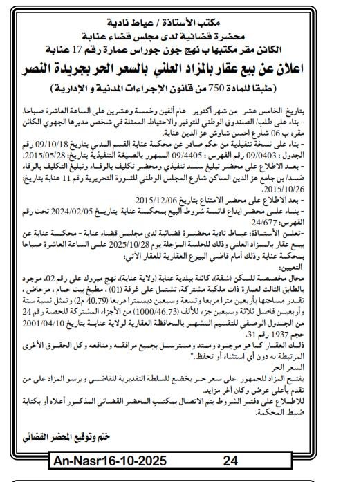 | Paru dans le journal : النصر | |