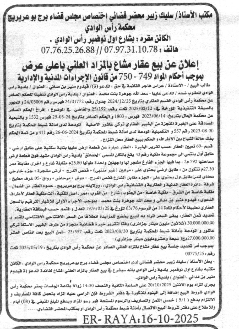 Il sera procédé à la vente au plus offrant et dernier enchérisseur le :