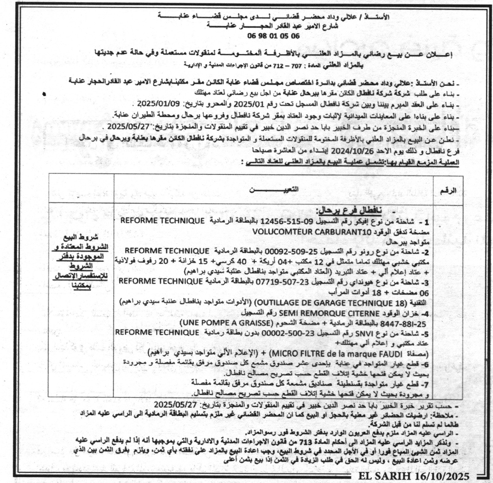 Il sera procédé à la vente au plus offrant et dernier enchérisseur le :