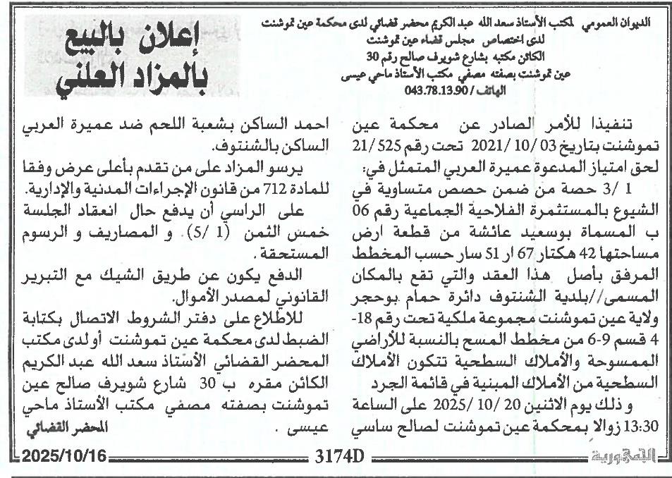 Il sera procédé à la vente au plus offrant et dernier enchérisseur le : 20/10/2025';