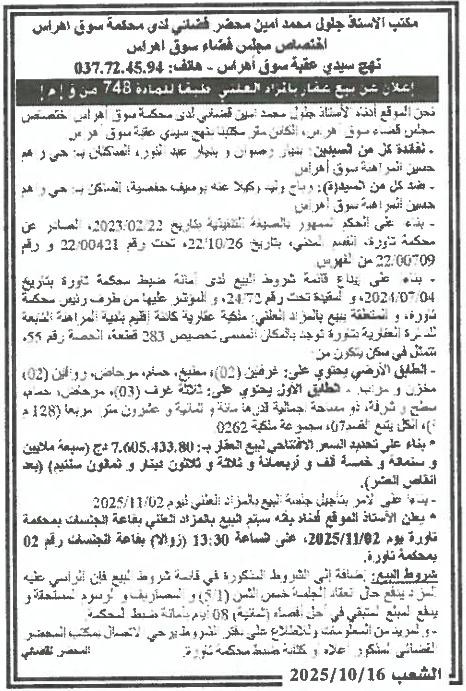 Il sera procédé à la vente au plus offrant et dernier enchérisseur le :