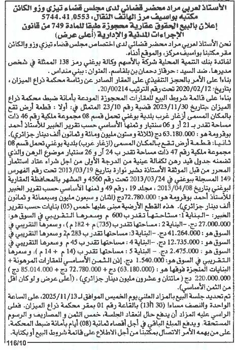 Il sera procédé à la vente au plus offrant et dernier enchérisseur le :