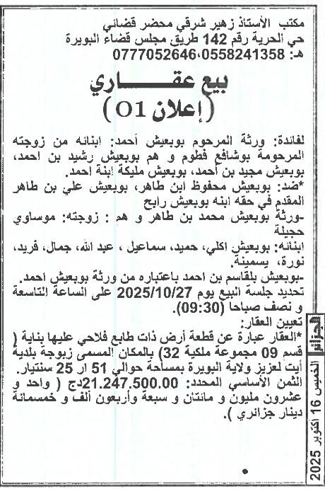 Il sera procédé à la vente au plus offrant et dernier enchérisseur le :