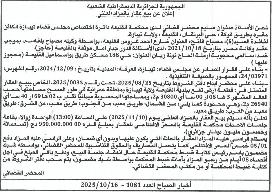 Il sera procédé à la vente au plus offrant et dernier enchérisseur le :