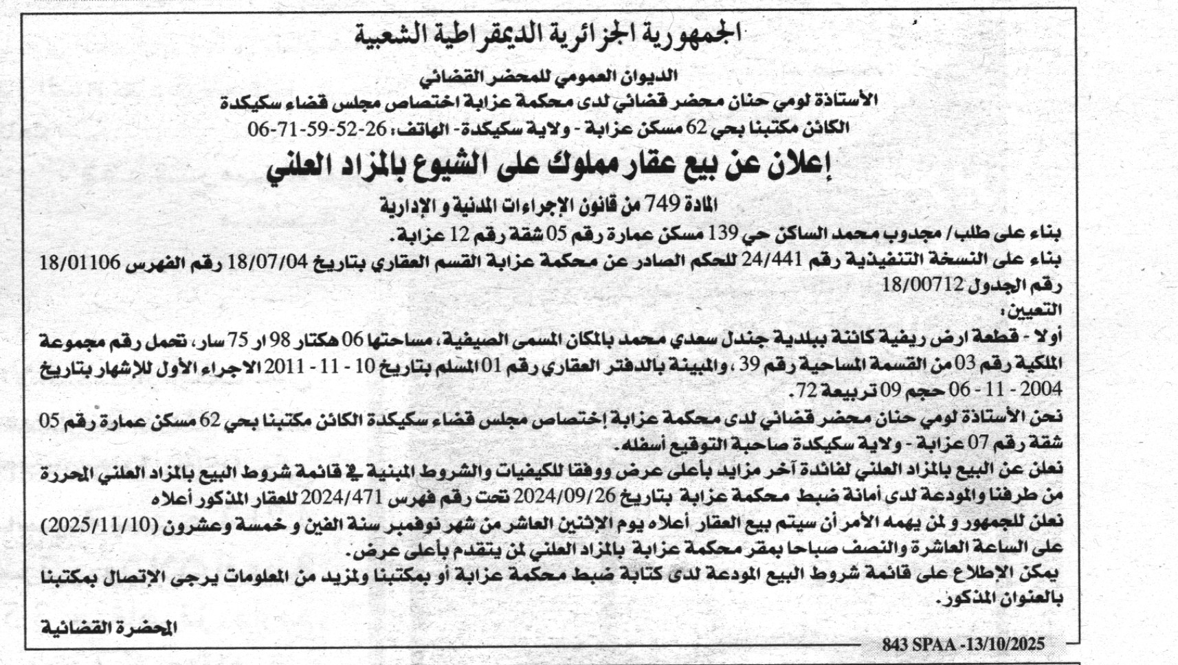 Il sera procédé à la vente au plus offrant et dernier enchérisseur le :
