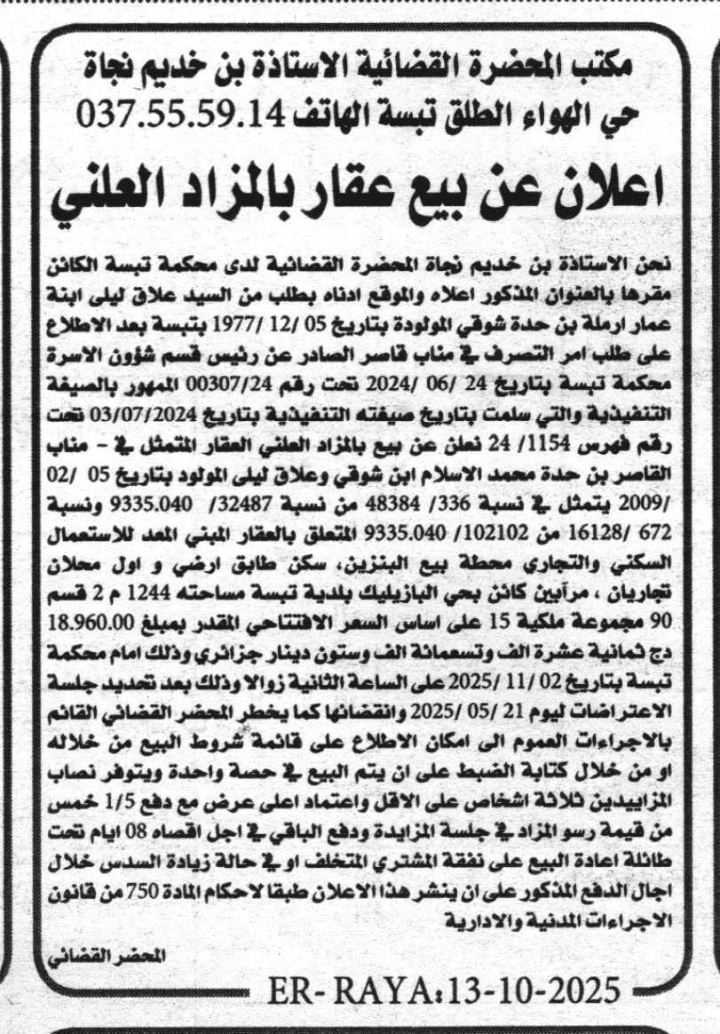 Il sera procédé à la vente au plus offrant et dernier enchérisseur le :