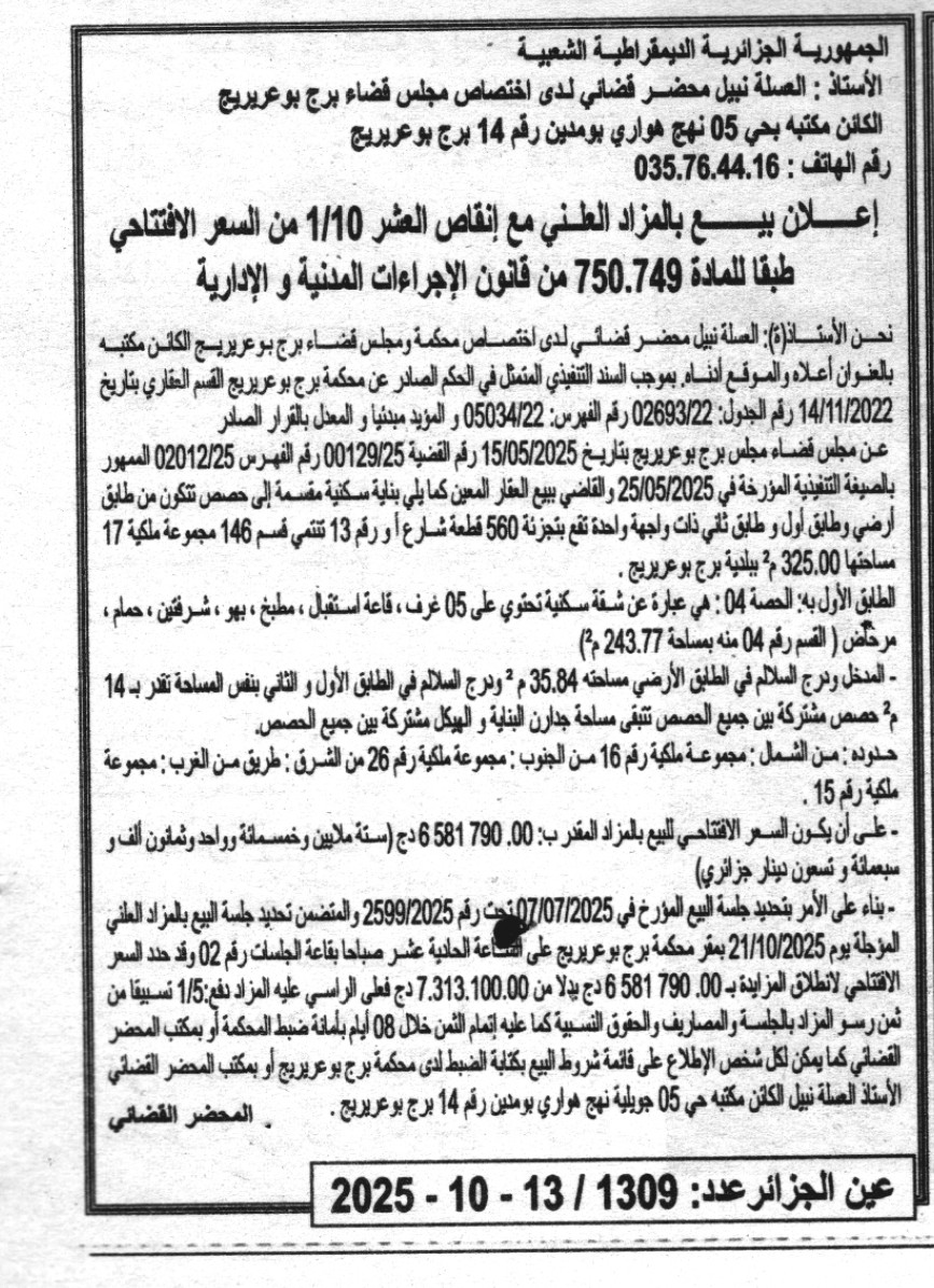 Il sera procédé à la vente au plus offrant et dernier enchérisseur le :